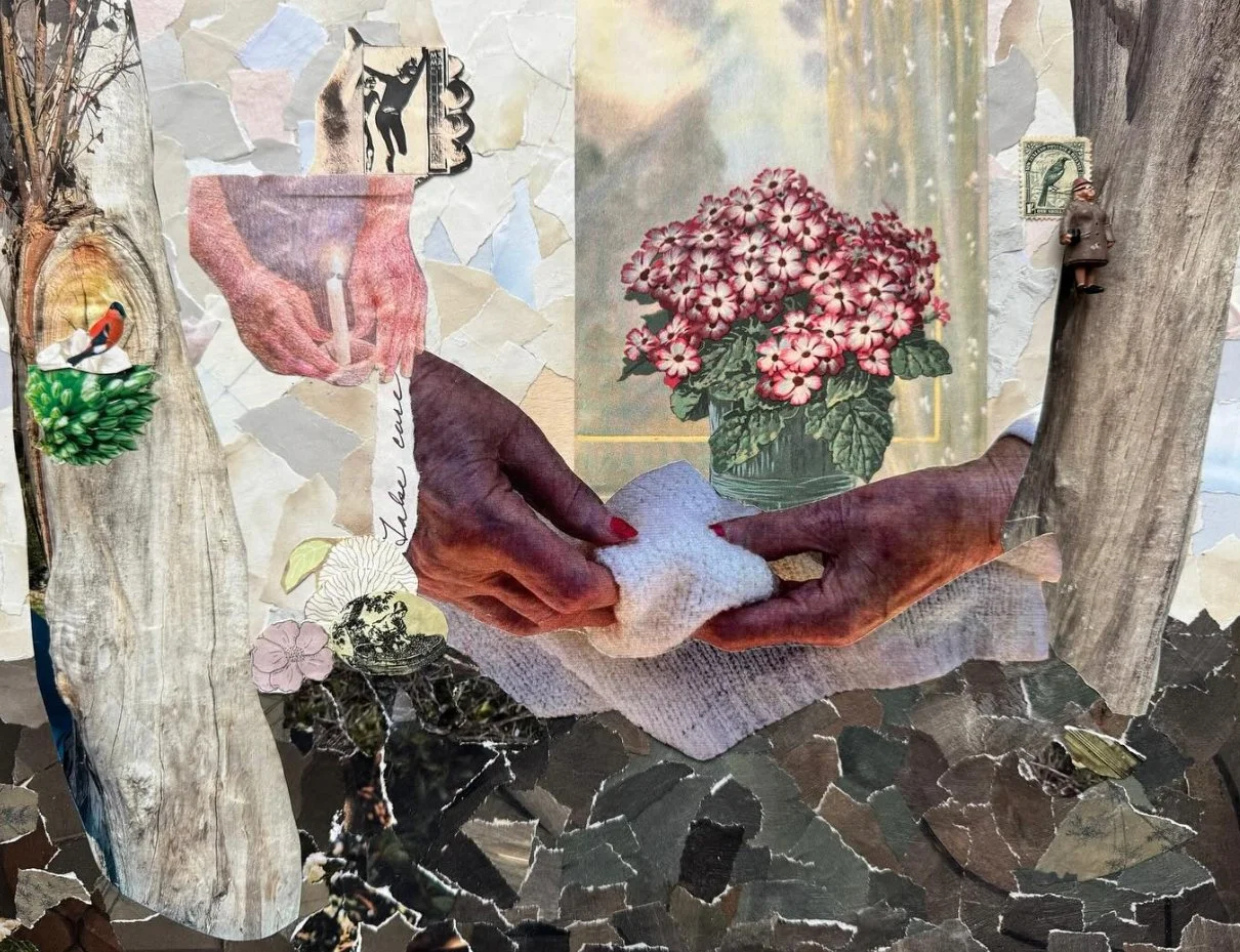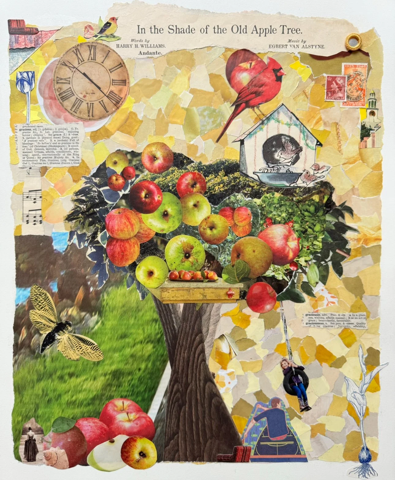 Ode to my Summer Tomatoes, 20" x 16", Paper collage with found objects